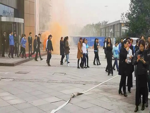 早上8:30,隨著大樓警報(bào)聲響起,模擬賣場內(nèi)發(fā)生火情,正迅速蔓延。各樓層管理員迅速組織員工緊急疏散。演習(xí)開始后,員工們用濕毛巾捂著口鼻,彎著腰逃離“火災(zāi)現(xiàn)場”,并迅速關(guān)閉大樓內(nèi)所有消防卷簾,控制“火勢”蔓延,所有員工緊張有序地逃離火場成功疏散到安全地帶。